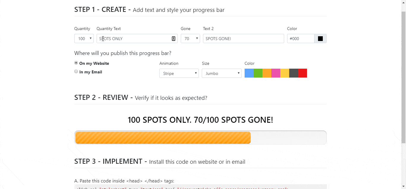 Now you can generate your own Animated Progress-Bars and embed on your pages.